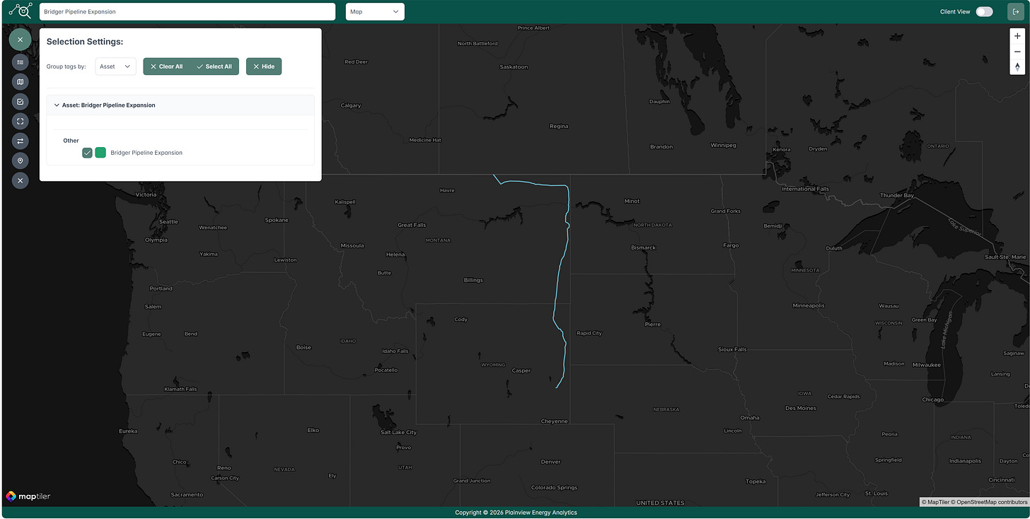 The geographic origin of the pipeline strongly suggests that the upstream Canadian portion will leverage partially built infrastructure from the canceled Keystone XL project. Portions of a 36-inch pipeline, along with facilities such as a terminal near Hardisty, Alberta, and two pump stations, remain in place and idle following the project’s termination in 2021. This existing network appears to be the primary upstream source capable of supplying the proposed volumes, effectively enabling a partial utilization, or resurrection, of Keystone XL’s Canadian segment to feed into the new Bridger line.