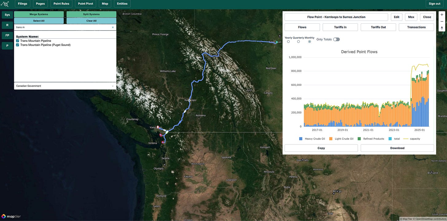 The Trans Mountain Pipeline, which expanded in mid-2024, delivered record volumes in August and September 2024. Mainline flows reached all-time highs, with the pipeline operating very close to its reported capacity (which varies slightly with batch composition and operating conditions).