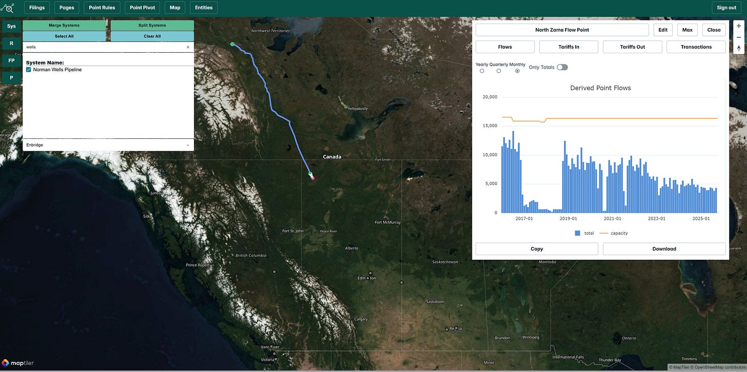Norman Wells pipeline: Ongoing slow production decline in the remote Northwest Territories field; long-term viability increasingly uncertain.