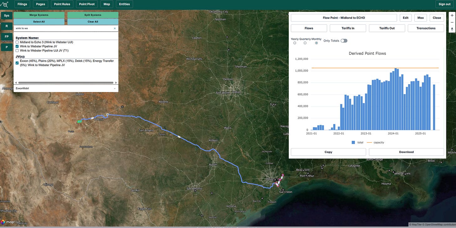 Possible explanations for the supply/flow mismatch include inaccuracies in EIA survey-based production estimates, which may overstate production; errors in pipeline reporting to the Texas Railroad Commission, which are subject to later corrections; or shifts in market share where unreported pipelines aggressively captured more throughput. Additional factors could include increased in-basin storage filling tanks or seasonal upticks in Cushing-bound flows on Basin, Sunrise II, or Centurion pipelines to midcontinent refineries. Midland to ECHO 3 volumes on the Wink to Webster undivided joint interest remain at capacity, ruling out issues there.