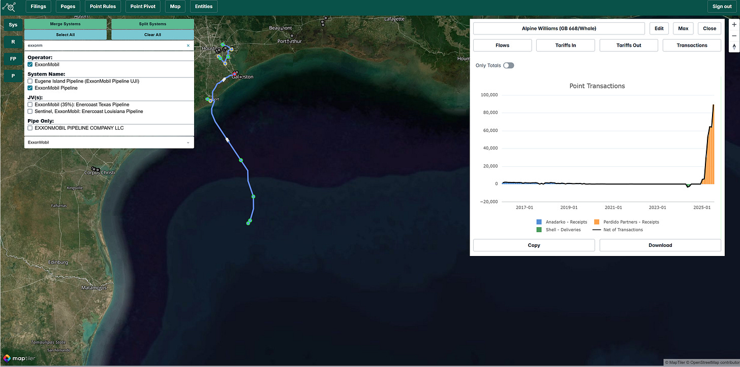 Shell’s Whale project in the offshore Gulf of Mexico appears to be nearing its estimated peak throughput. Volumes from the project reached nearly 90,000 barrels per day in July 2025, according to data reported from ExxonMobil’s HOOPS pipeline, approaching Shell’s guided peak throughput of approximately 100,000 barrels of oil equivalent per day. Oil volumes from the project are transported via Williams’ newly built Whale Pipeline, which has a capacity of 140,000 barrels per day and interconnects with ExxonMobil’s HOOPS pipeline to deliver oil onshore to the Texas Gulf Coast areas of Galveston and Freeport.