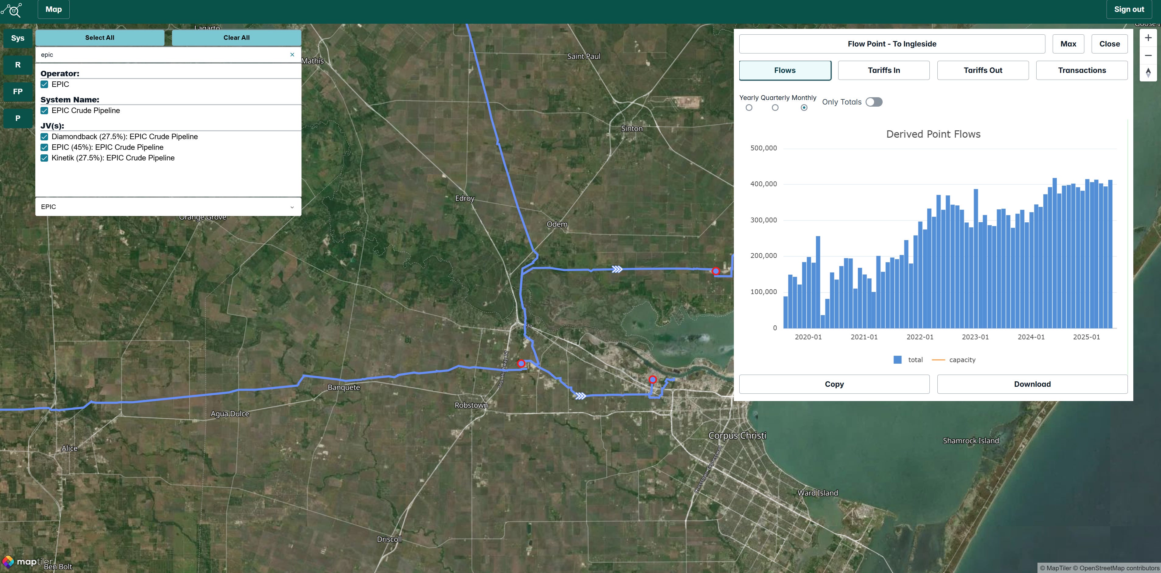 Operational since early 2020, the EPIC Crude Pipeline boasts a capacity of 625,000 barrels per day and is currently operating at full capacity. It features four primary receipt points in the Permian Basin—Orla (30,000 barrels/day), Wink (150,000 barrels/day), Midland (175,000 barrels/day), and Crane (275,000 barrels/day)—and additional minor receipt points in the Eagle Ford area. The pipeline delivers primarily to Corpus Christi (250,000 barrels/day) and Ingleside (400,000 barrels/day), with smaller deliveries to Taft and Midway. The original contract structure included a mix of five- and ten-year terms, with most contracts now likely extended to 2030 and 2035, ensuring operational stability.