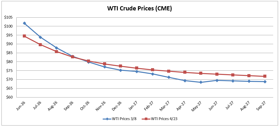 However, new horizontal rig additions remain tepid due to the steeply backwardated WTI forward curve, with 2027 prices hovering just above $70 per barrel. While it is reported that one Bakken operator has committed to picking up a rig and frac crew for July, and another is considering a similar move, broader capital spending discipline persists across North Dakota and the wider U.S. shale patch. This market structure signals that even if Middle East supply disruptions persist, U.S. production growth is likely to remain muted in the medium term, as producers remain wary of locking in incremental capital at today’s uncertain longer-dated prices.