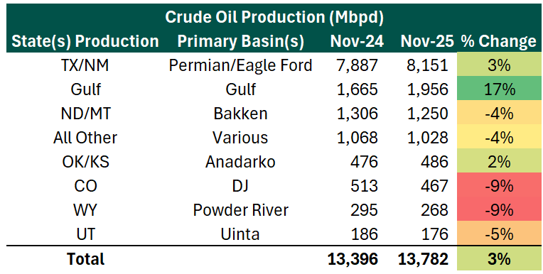 EIA November 2025 Crude Data: Declines in PADD 4 Basins Being Offset by Permian and Gulf
