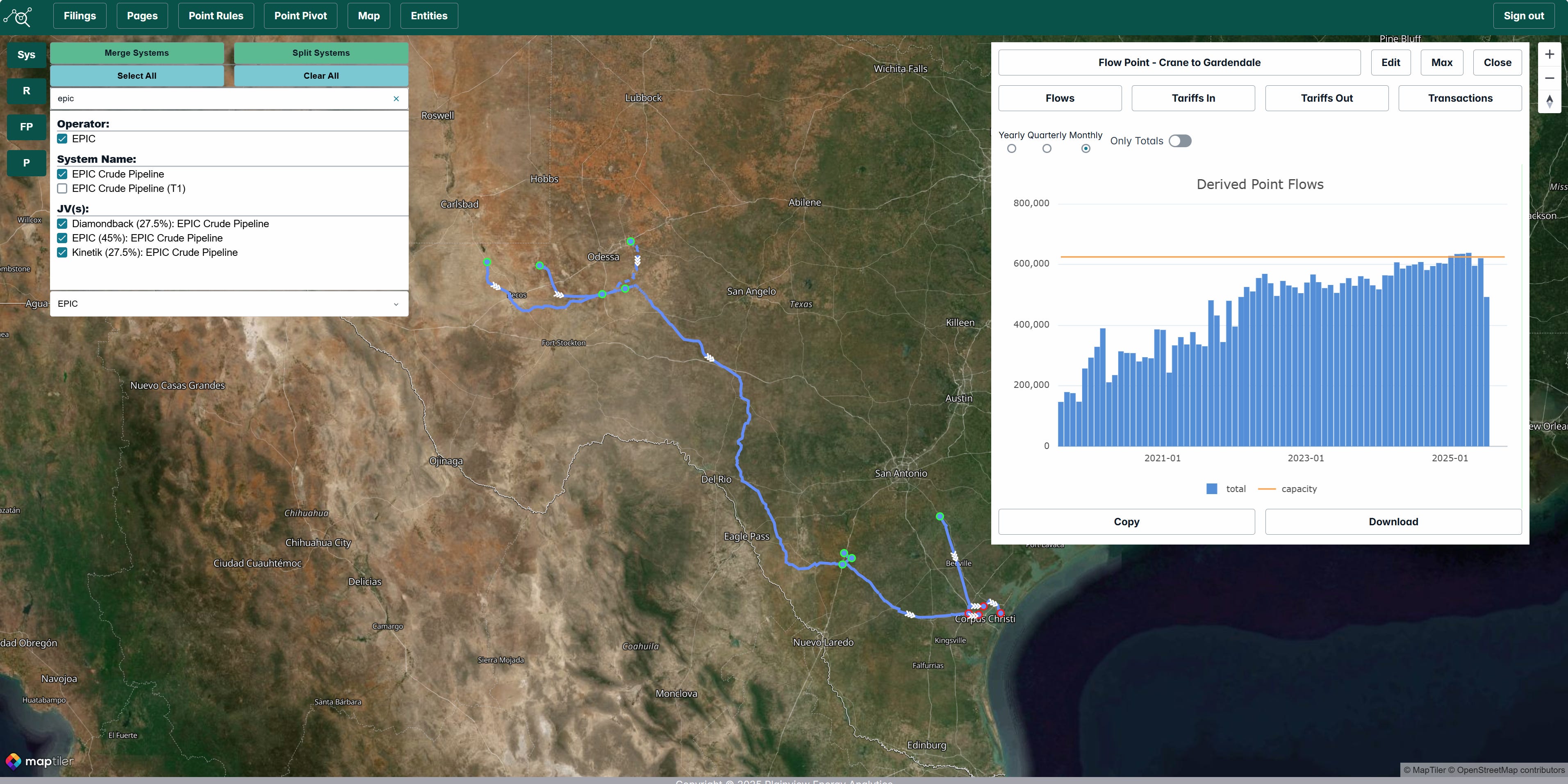 The EPIC Crude Oil Pipeline spans from production hubs in the Permian Basin and Eagle Ford Shale to export terminals in Corpus Christi, boasting a nameplate capacity of 600,000 barrels per day (bpd), with recent operations pushing above 625,000 bpd. However, flows dipped in July 2025, possibly due to reduced volumes amid rising marketing competition in the Permian. Despite this, the pipeline appears to be well contracted for the next five years, supported by long term commitments from key stakeholders like Kinetic, Diamondback, and others. Plains now controls a complementary network including the fully owned Cactus I (with a 50% owned joint venture segment to Corpus Christi shared with Enterprise) and 70% owned Cactus II (30% owned by Enbridge), both operating near full capacity. This setup positions Plains with an opportunity to optimize barrel routing across its newly purchased 30-inch diameter EPIC line, which holds expansion potential up to 900,000 to 1 million bpd.