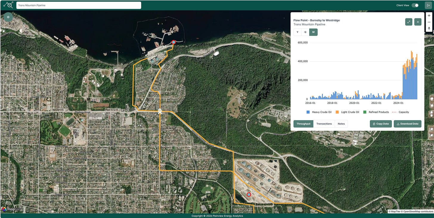 Since the major expansion came online in 2024, flows on the Trans Mountain Pipeline have steadily increased, reaching a record high of 815,000 barrels per day in September 2025. The system maintains a total capacity of around 890,000 barrels per day, but maximum exports from the Westridge Marine Terminal have remained just under 500,000 barrels per day, prompting ongoing questions about port-related constraints and the pipeline’s ability to sustain full utilization. The DRA project aligns strategically with ongoing dredging at the Westridge port, expected to conclude by the end of 2026 or early 2027. This work will resolve draft restrictions that previously limited Aframax tankers to about 70 percent capacity, enabling full loadings and potentially adding 200,000 to 250,000 barrels per shipment. Combined with the DRA enhancements, this could allow the pipeline to approach up to 980,000 barrels per day, effectively removing potential bottlenecks at the export point.
