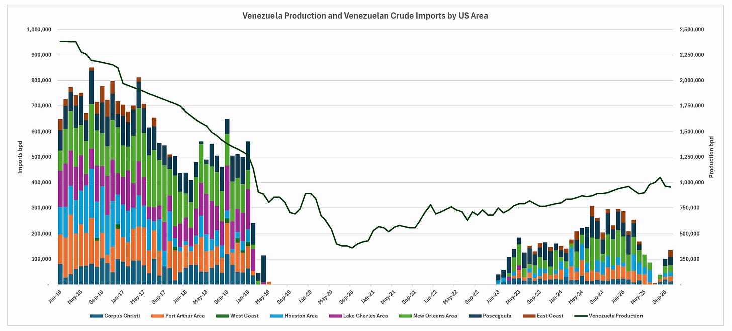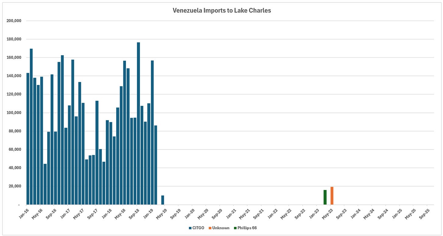 Drill downs into specific Venezuelan crude import locations: